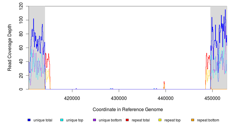 | seq id | start | end | size | ←reads | reads→ | gene | description | |||
